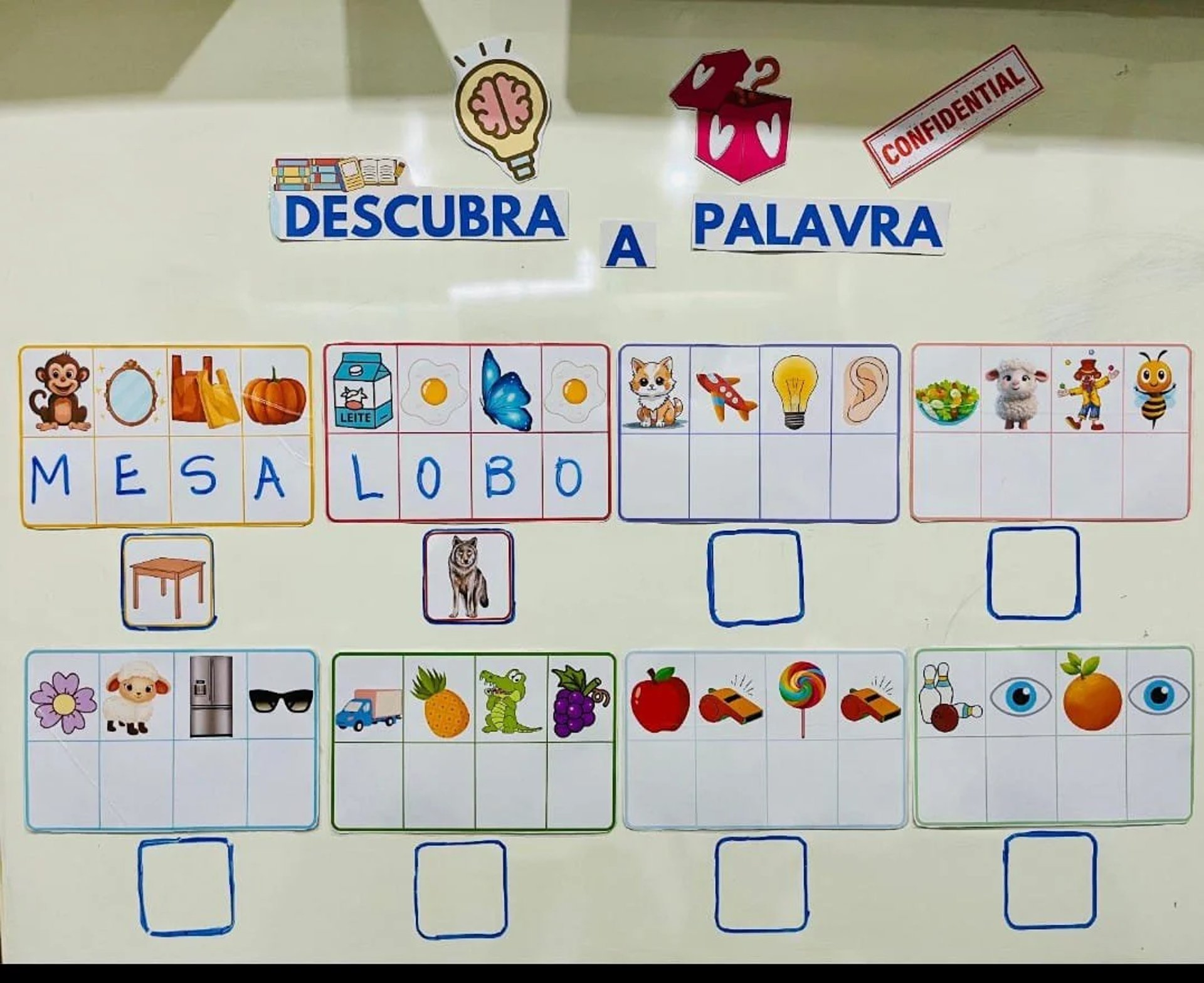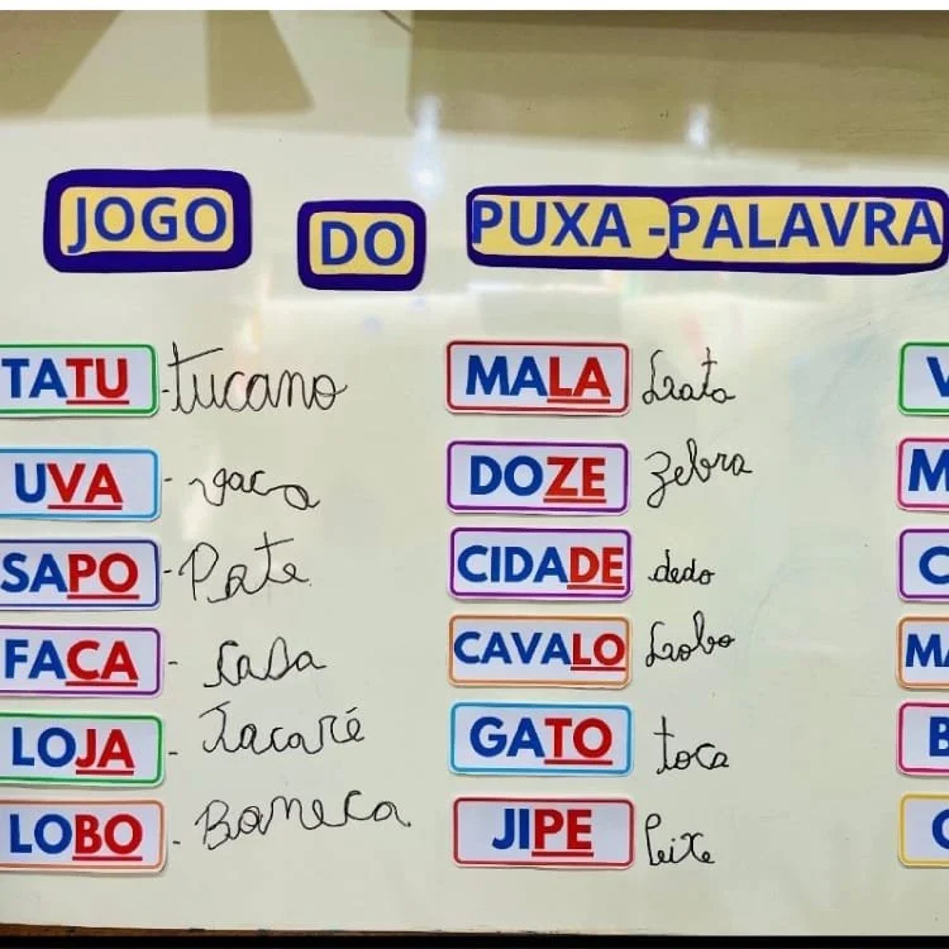 Atividade de formação de palavras com sílabas móveis e apoio visual.