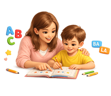 Transforme o tempo em casa em aprendizado de qualidade: exercícios lúdicos e práticos que ajudam seu filho a ler e escrever com confiança, sem pressão e no ritmo dele.